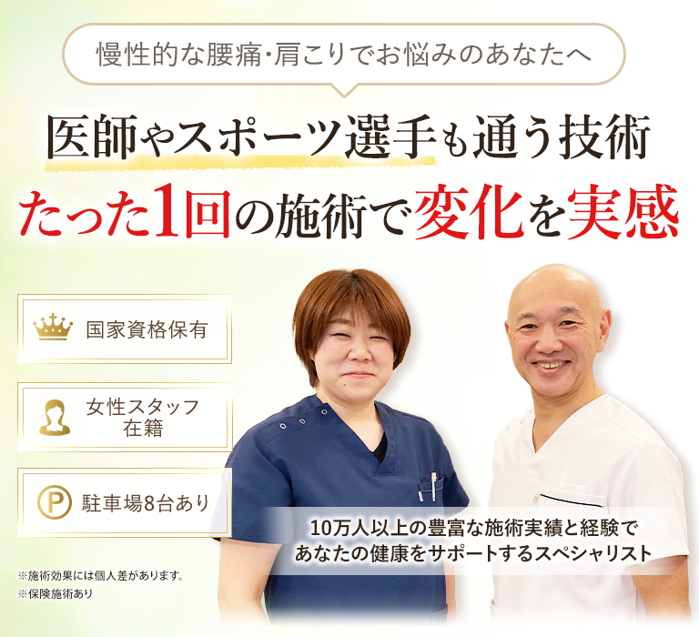 当院では、解剖学・生理学に精通した国家資格者が在籍しており、痛み・不調からの早期回復を心がけています。
